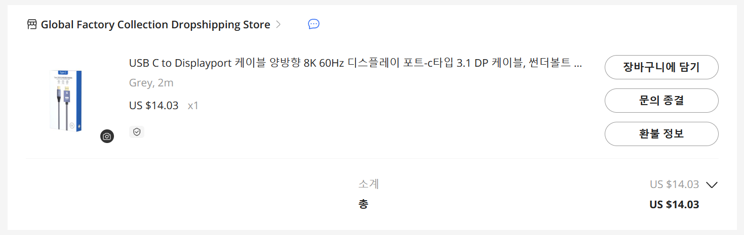 알리익스프레스에서 양방향 USB-C to Displayport 케이블을 검색해보면