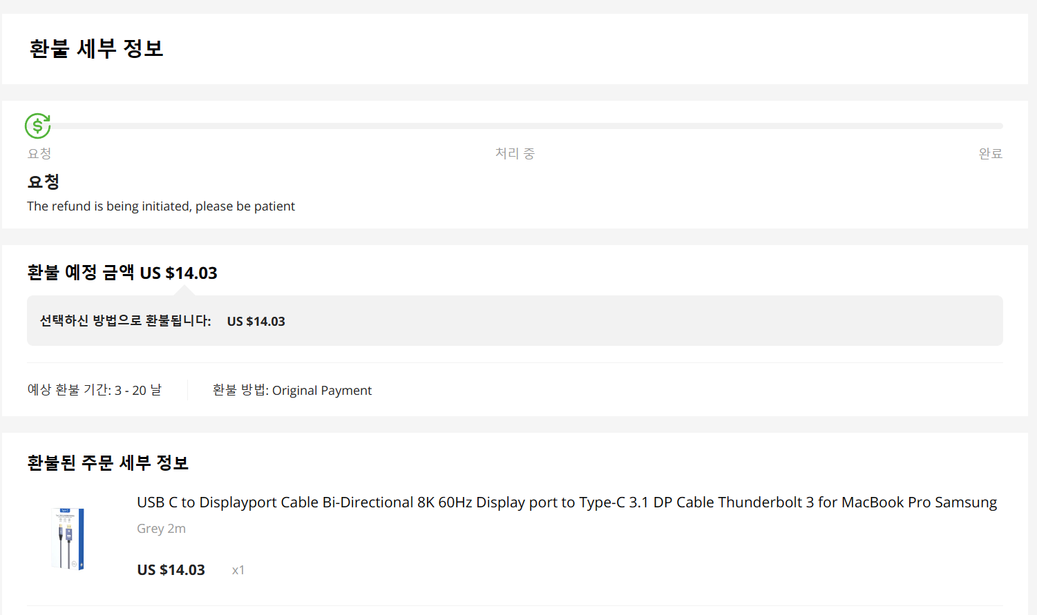 알리 중재를 통해서 불량을 확인하고 전액 환불을 결정했음에도 판매자는 요지부동입니다.