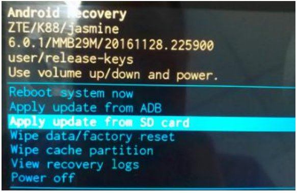 2. Enter the recovery mode and choose the Apply update from SD card as below