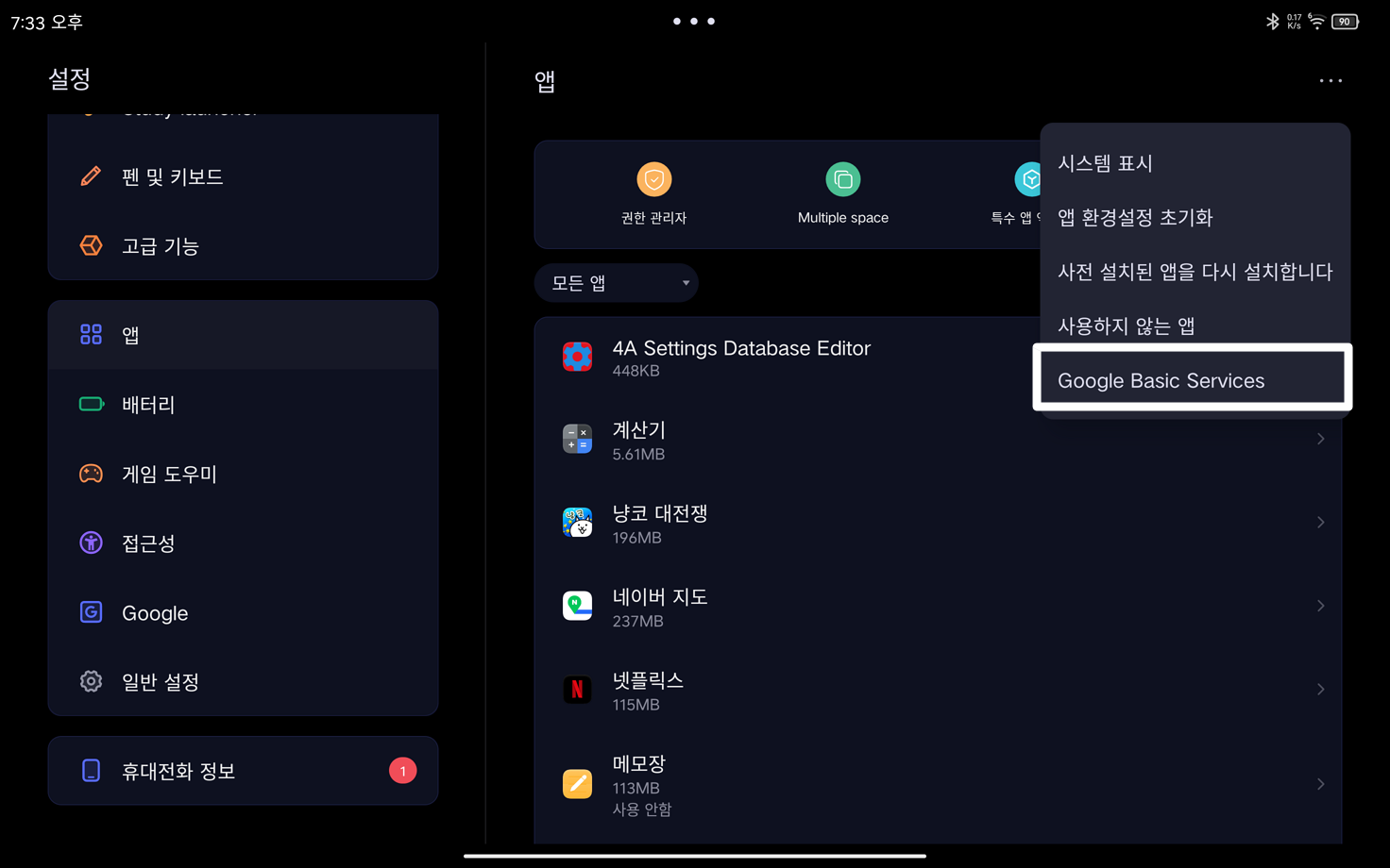 이미 태블릿 설정 과정에서 Google Play를 설치하였다고 가정하고 반글화 과정을 설명하겠습니다.