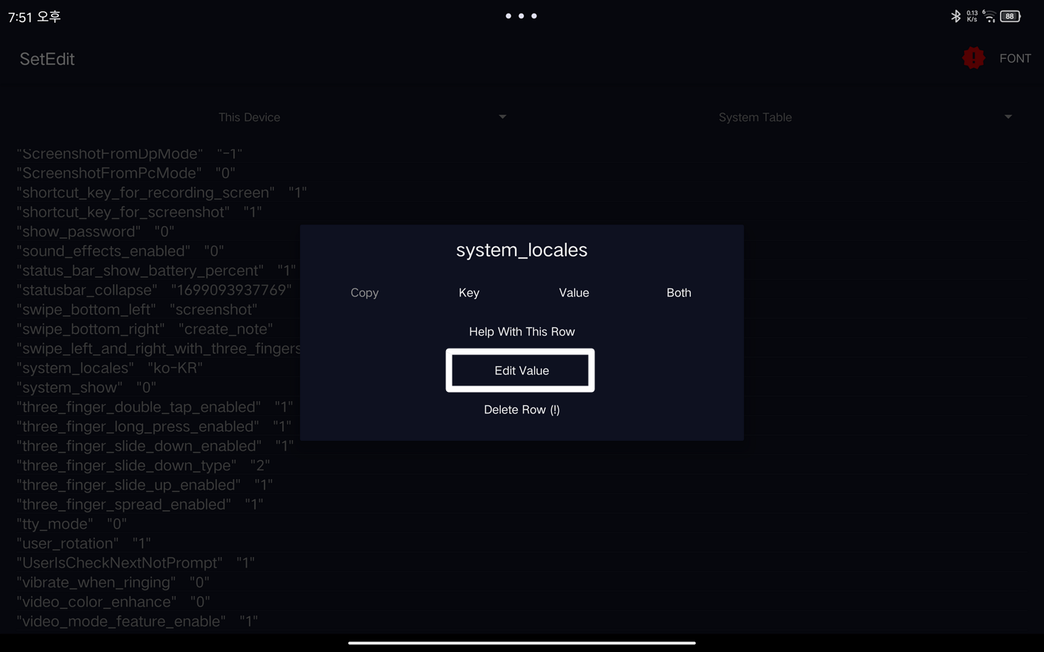 "system_locales" 항목의 값을 선택하고 [Edit Value] 항목을 선택합니다.
