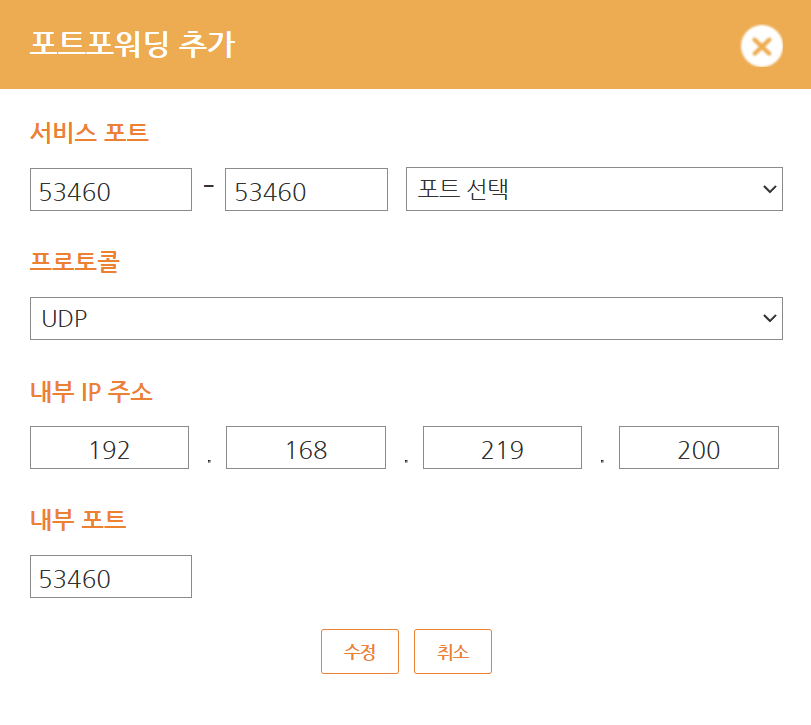 - 내부 포트 - 53460 (WireGuard서버 설정 시 포트)