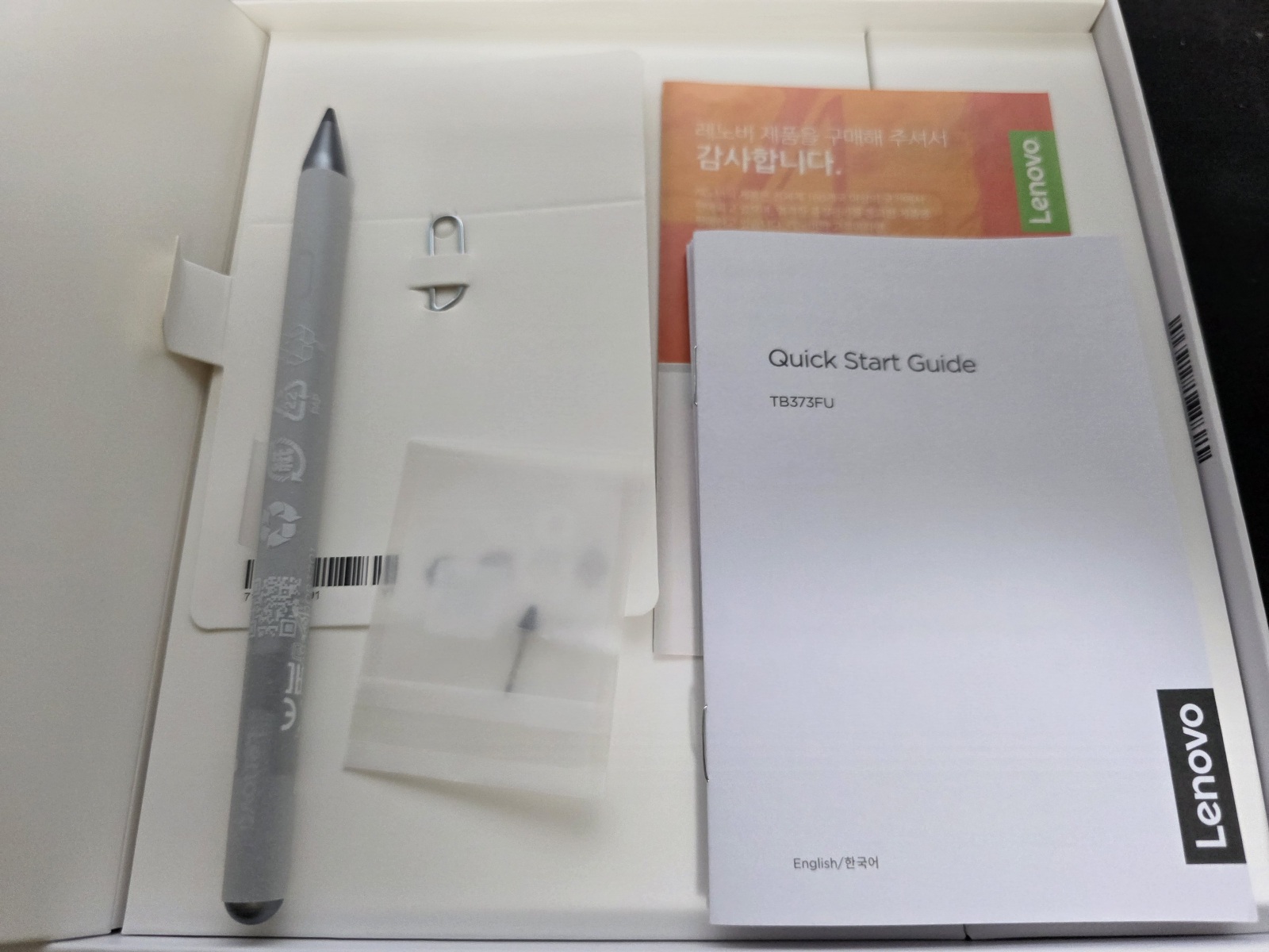 박스 한쪽에는 펜과 여분의 팁이 있고