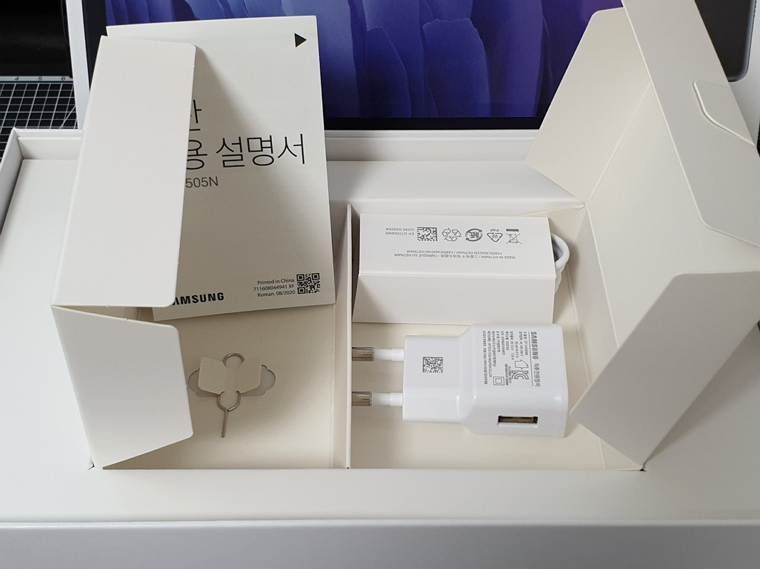 탭S7+의 박스와 비교하면 제품 역시 제품 크기의 차이로 인해 박스도 탭S7+의 것이 크네요.
