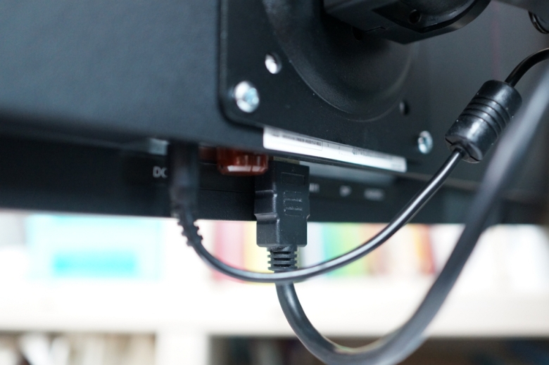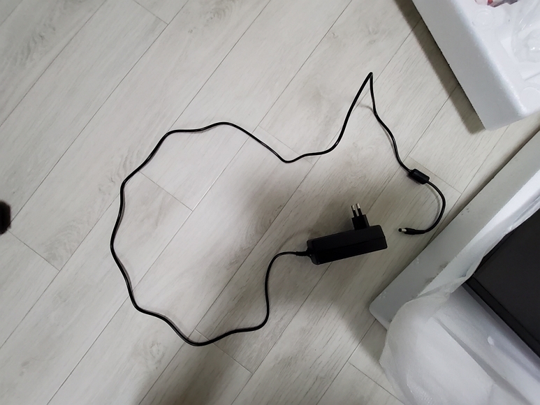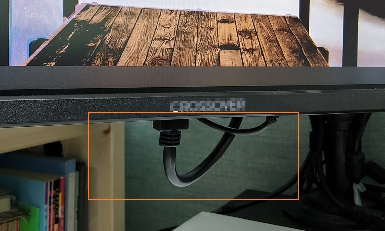 전원 아텁터 꼬다리와 HDMI케이블 꼬다리가.. 모니터 밖으로 삐쳐나옵니다.