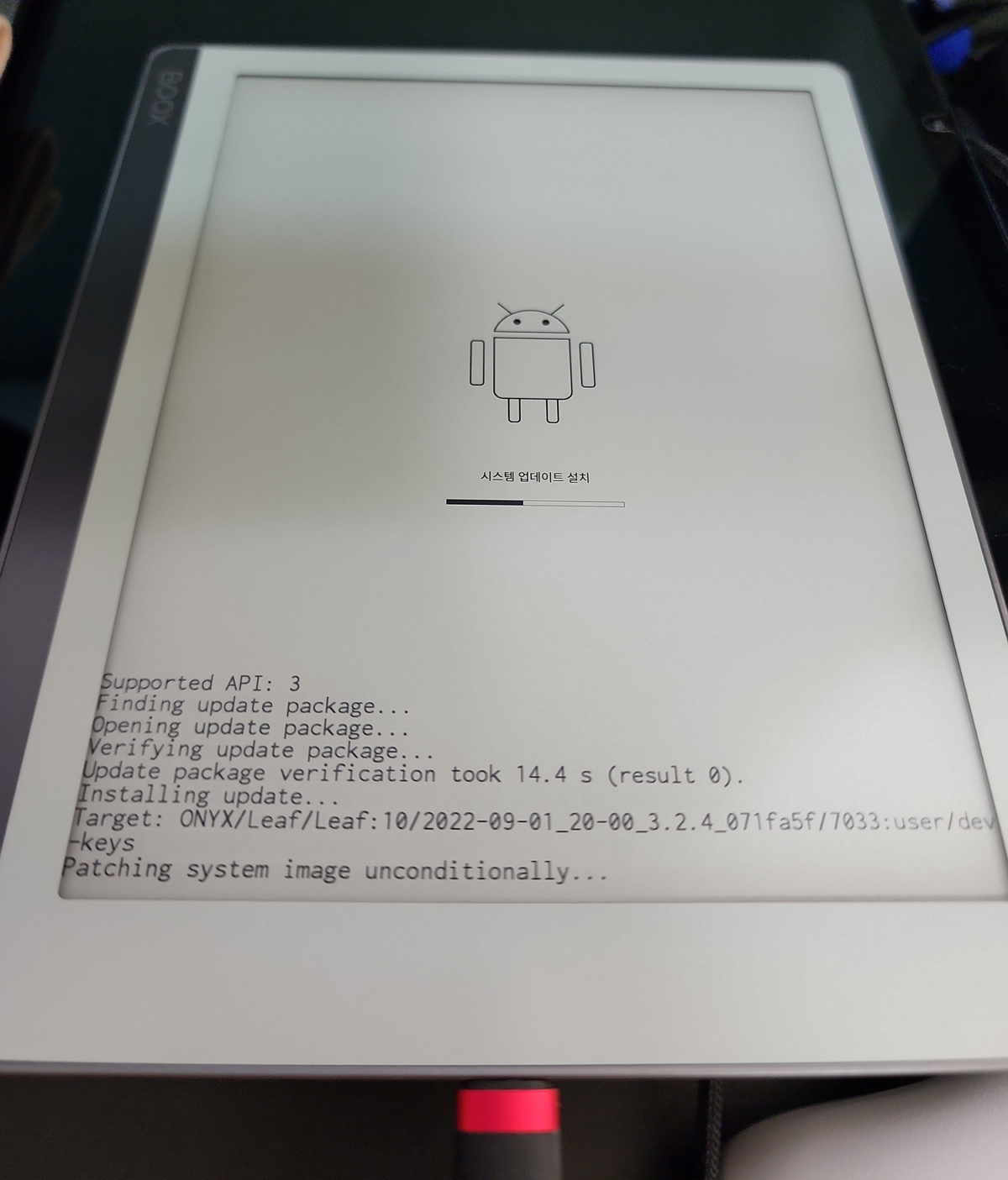 우선 부팅해서 초기 설정 화면들을 지나고 와이파이 연결하니 업데이트가 존재하네요.