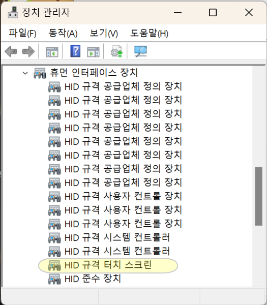 이때 윈도우의 버그 또는 설정의 문제로 인해 터치스크린이 제대로 동작하지 않는 현상이 있습니다.