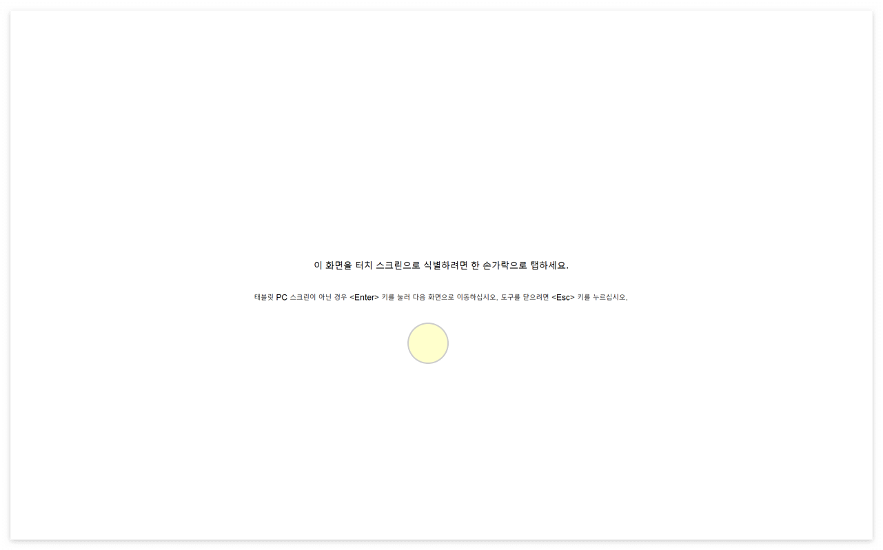 실제 터치 스크린으로 설정할 모니터에 위 화면이 출력 되면 아무 영역이나 손으로 터치를 하면 완료 됩니다.