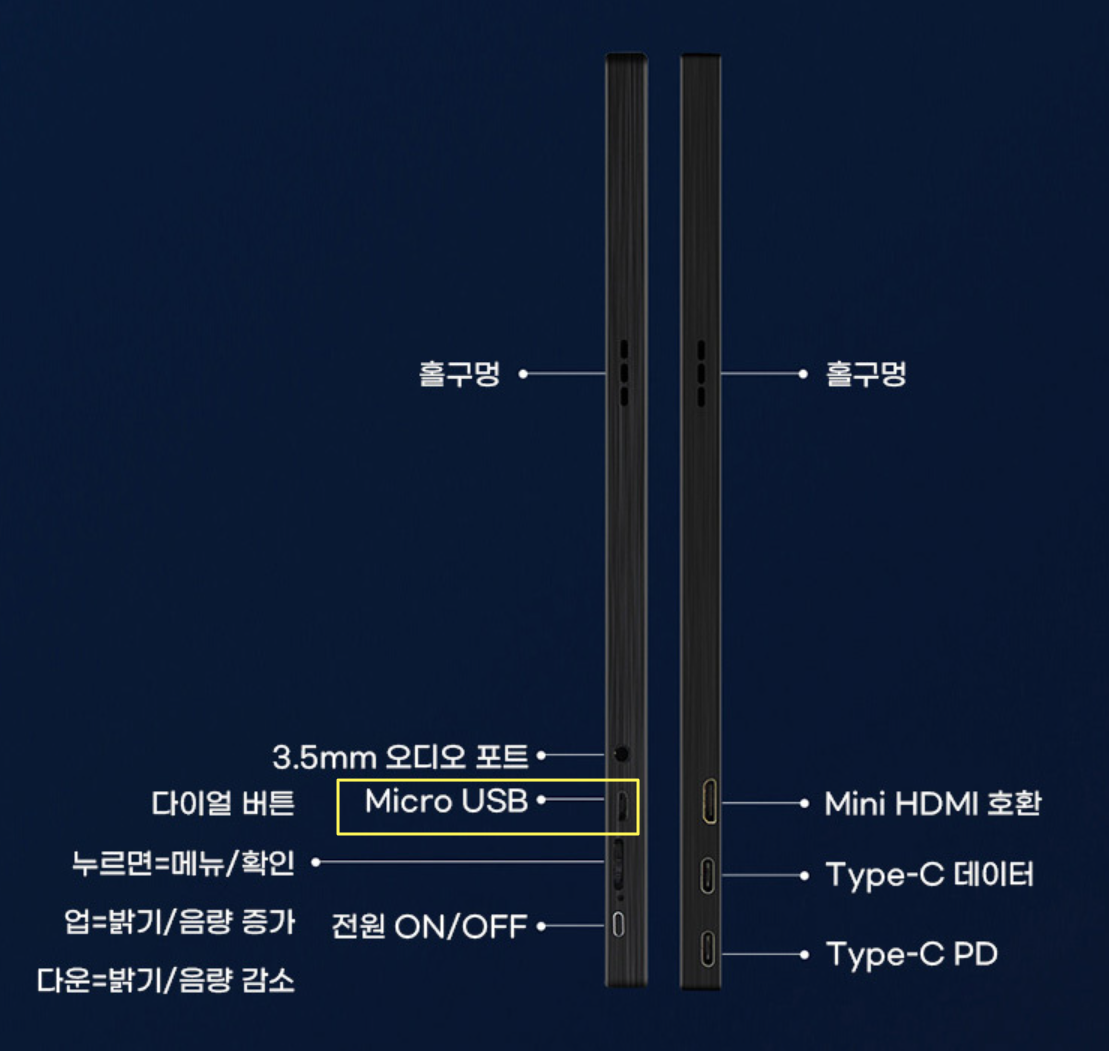 이 때 MicroUSB포트를 이용하면 USB 주변기기를 연결할 수 있습니다.